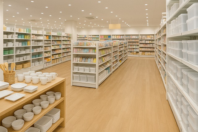 キッチン用品、文具、収納グッズ、インテリア雑貨など、多彩な商品が揃っており、デザイン性の高さが魅力です。